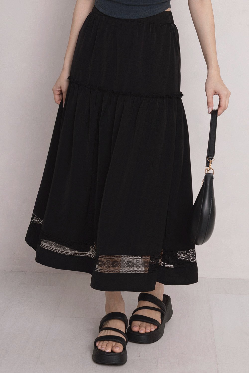 Vida Crochet Trim Skirt Black