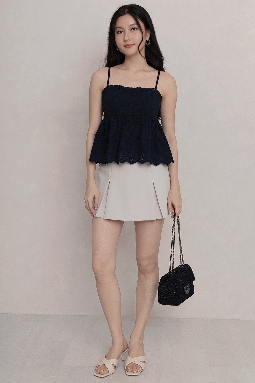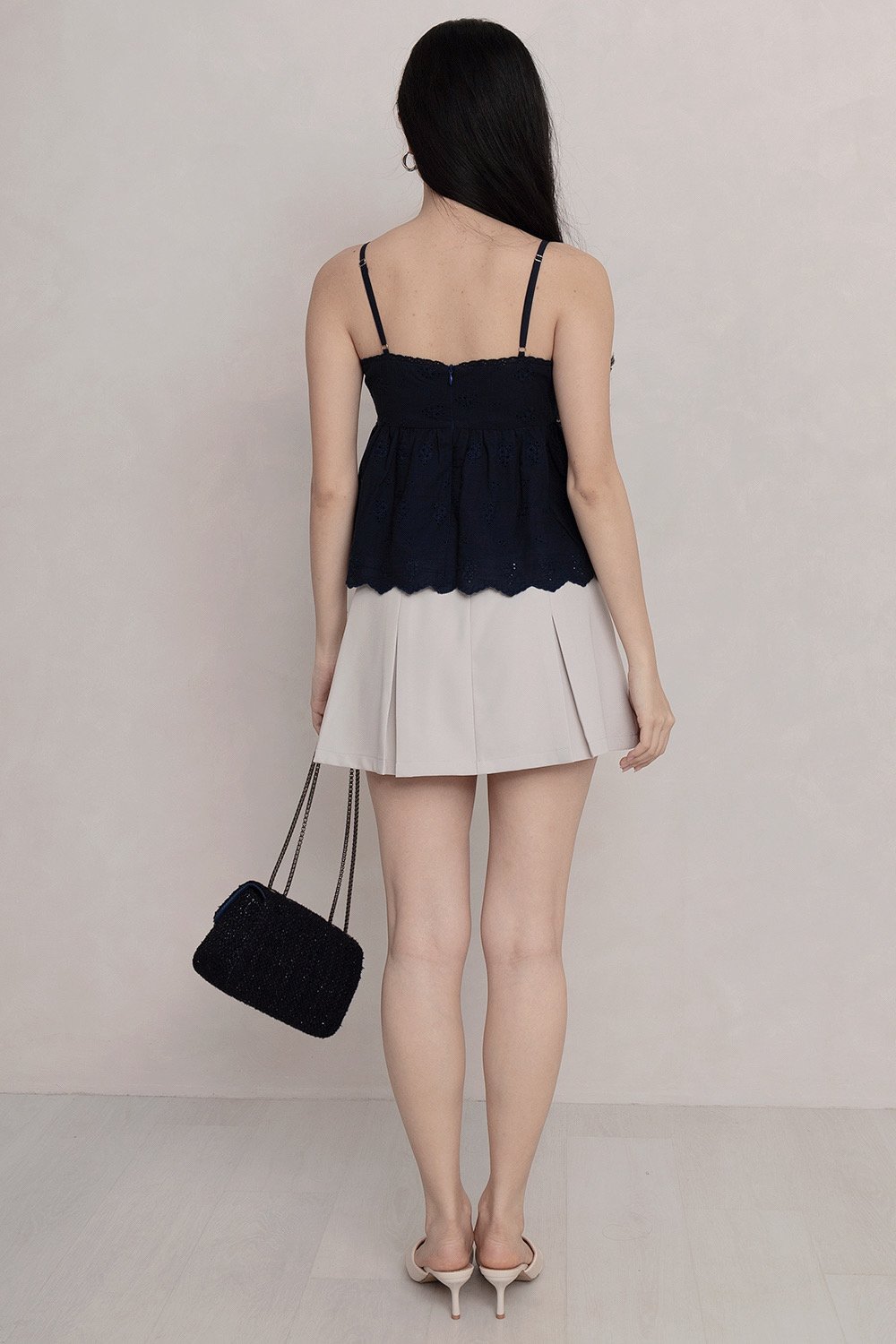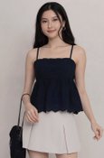 Della Padded Eyelet Top Navy
