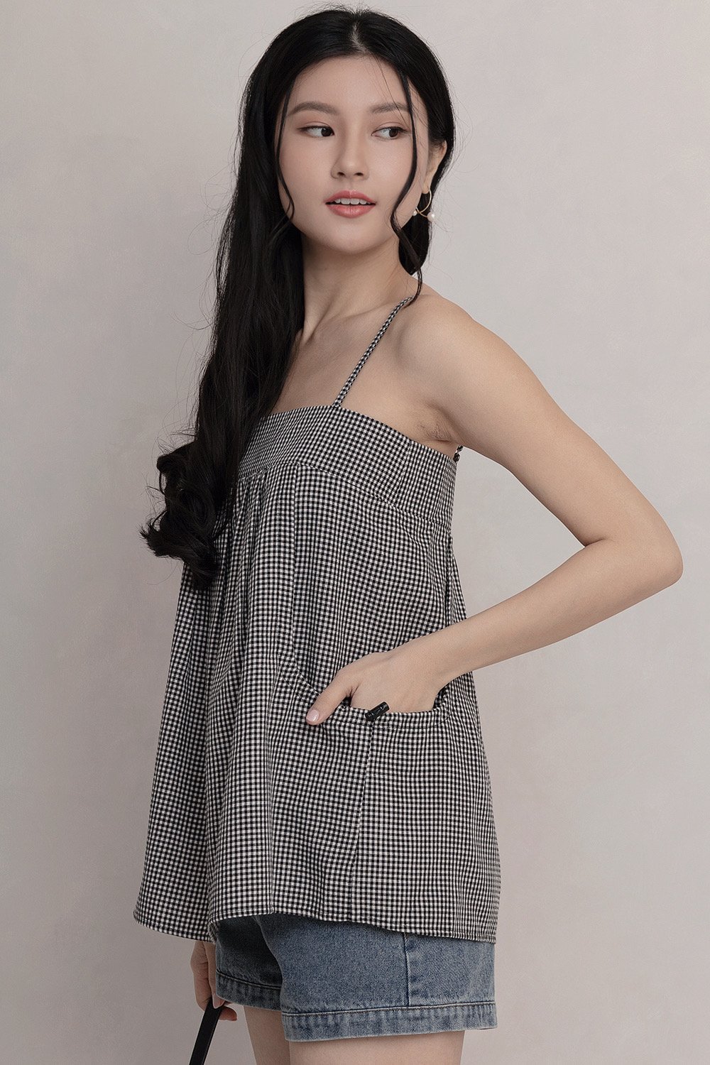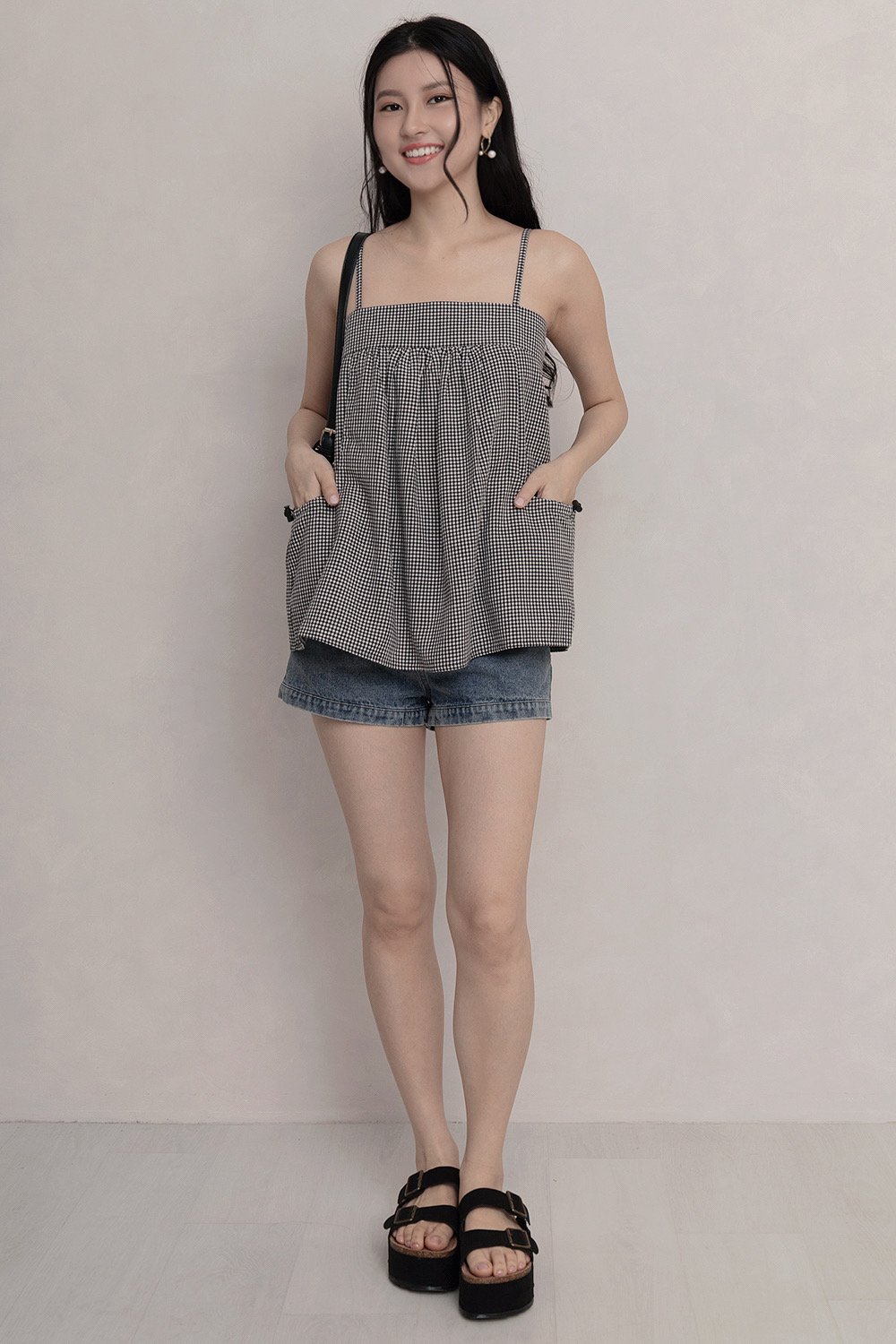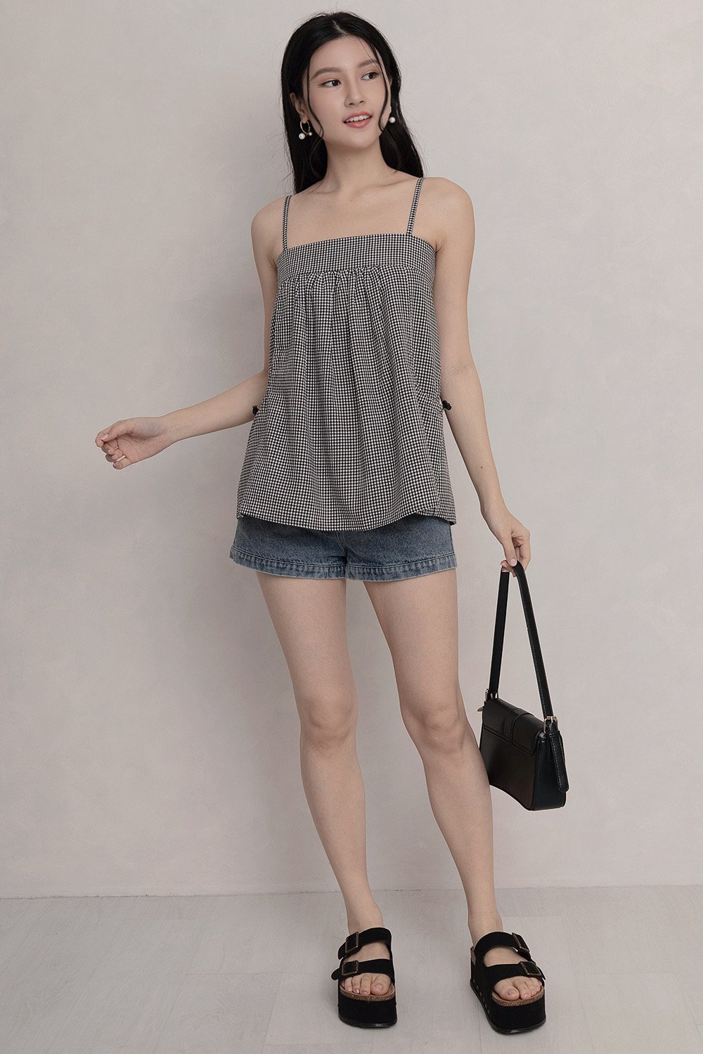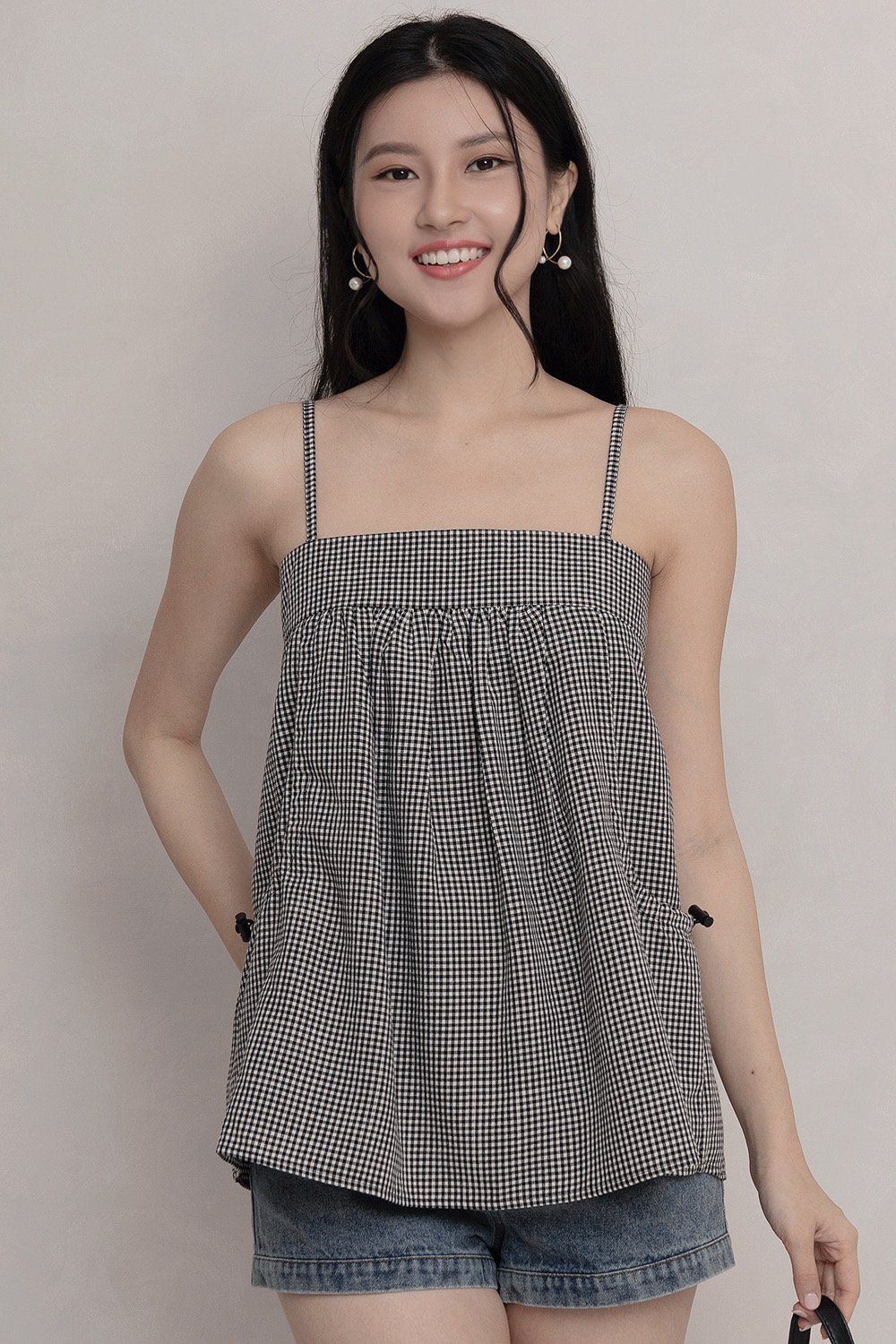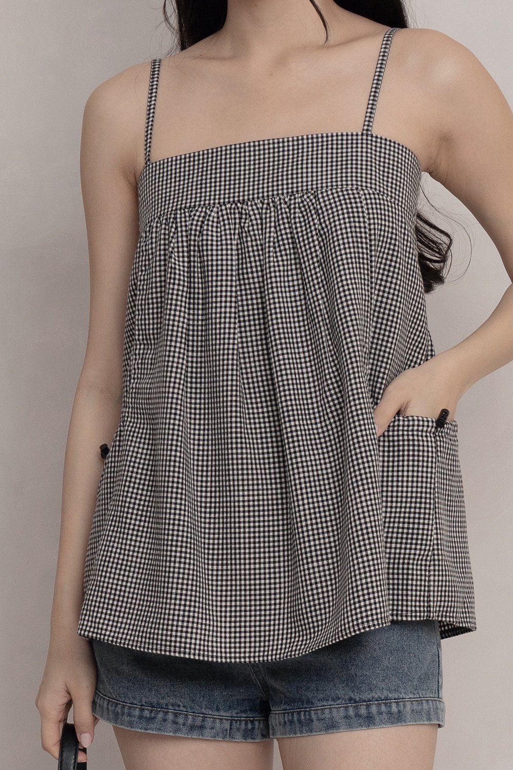 Zinnia Parachute Top Black Gingham